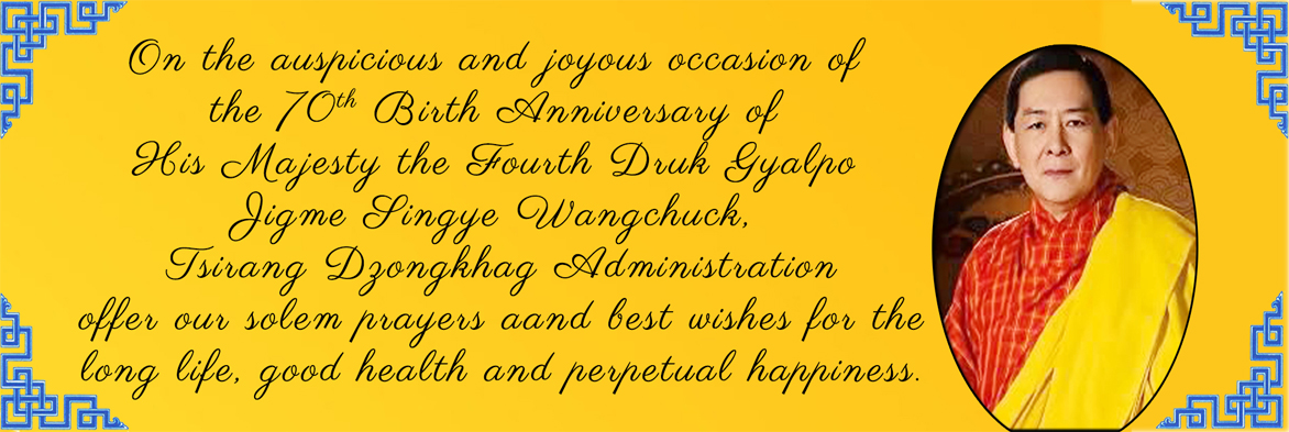 It is my great privilege to serve the people of Tsirang, a Dzongkhag known for its natural beauty, peaceful environment, and vibrant communities. Our commitment is to ensure inclusive and sustainable development in alignment with His Majesty’s vision and the national priorities. We strive to deliver efficient public services, strengthen local governance, and foster socio-economic growth through innovation, collaboration, and accountability. I urge all citizens to remain engaged, responsible, and cooperative as we work together for a better future. Let us uphold the values of integrity, unity, and hard work in all that we do. Together, we can make Tsirang a model Dzongkhag in every aspect.